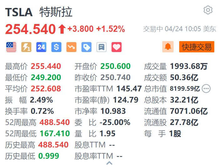 特斯拉(TSLA.US)涨超1.5%,报254.54美元。消息面上,摩根士丹利维持对特斯拉的“增持”评级,并给出410美元的目标价。分析师Adam Jonas团队认为,尽管核心汽车利润率堪忧且面临关税驱动的供应风险,但马斯克的注意力似乎已DOGE等事务重新聚焦到特斯拉本身,并在自动驾驶和机器人方面设定了“步入正轨”的里程碑,这足以“让忠实拥趸感到满足”。该行认为,投资者需要保持耐心,等待自动驾驶的梦想转化为收入和现金流。(格隆汇)