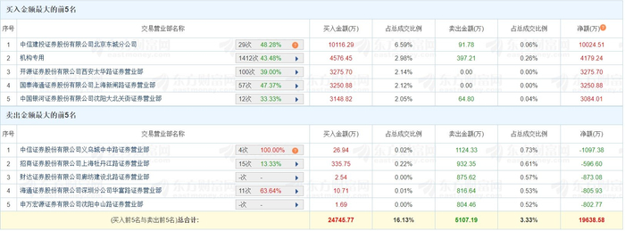 格隆汇4月25日|九洲集团(300040.SZ)今日20%涨停,换手率43.12%,成交额15.34亿元。龙虎榜数据显示,游资“呼家楼”位列买一席位,净买入1亿元;“量化打板”位列买三席位,净买入3275.7万元。上榜席位全天买入2.47亿元,卖出5107.19万元,合计净买入1.96亿元。(格隆汇)