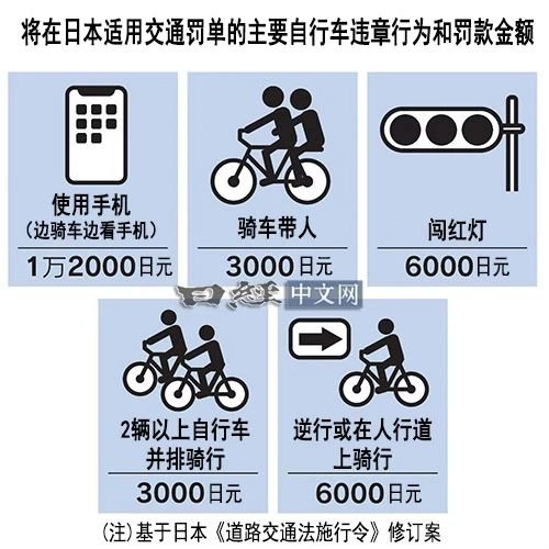 据日经中文网,将于2026年4月1日施行修订后的日本《道路交通法》,针对自行车交通违章,引入了交通罚单。修订后的该法首次明确了对于113种违章行为的罚款金额。例如,自行车“骑车带人”将罚款3000日元(约合人民币154元),日本警察厅正在加紧进行法规宣传和落实安全教育。容易导致交通事故的边骑车边看手机将罚款1万2000日元(约合人民币614元),闯红灯和逆行将罚款6000日元(约合人民币307元)。针对自行车特有的违章行为,列出了4项罚款。骑车带人和两辆以上自行车并排骑行将罚款3000日元(约合人民币153元),骑不带刹车的“固定齿轮自行车”将罚款5000日元(约合人民币256元)等。如果在期限内缴纳罚款,将不予以刑事处罚。