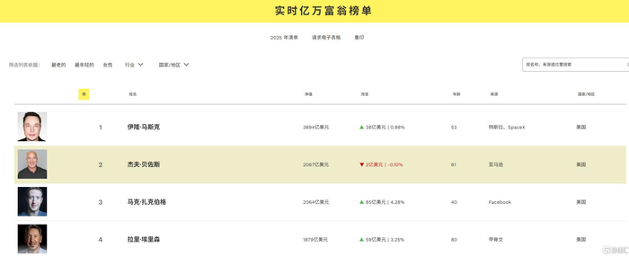 福布斯最新数据显示,贝索斯目前净资产达2067亿美元,位列全球富豪榜第二位,仅次于特斯拉CEO埃隆·马斯克。