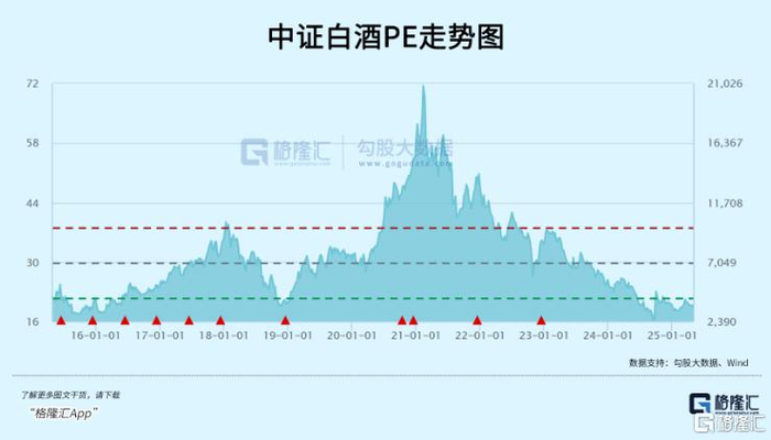 目前,中证白酒指数最新PE仅为19.9倍,较2021年2月的70倍已经大幅回落超70%,现与2015年初、2018年底的估值水平大体一致了。