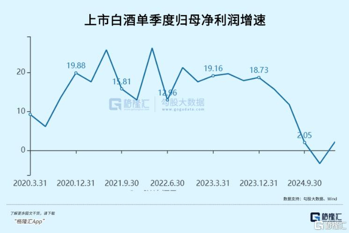 要知道,2004年以来,这19年当中仅有2013、2014年因三公消费出现双位数负增长外,其余年份白酒板块净利润均保持了双位数强劲增长。2024年仅录得7.4%,打破了白酒多年持续高增的神话。