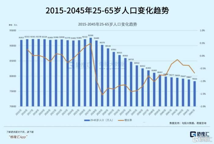 据君度咨询,中国25岁-65岁(饮酒主要年龄段)之间总人口数在2027年之前均维持在9.2亿左右,但从2028年开始人口便持续下降,到2035年将降至8.3亿,2045年降至7.8亿。目前,这个饮酒群体人数没有什么变化,但几年之后,压力会更大一些。