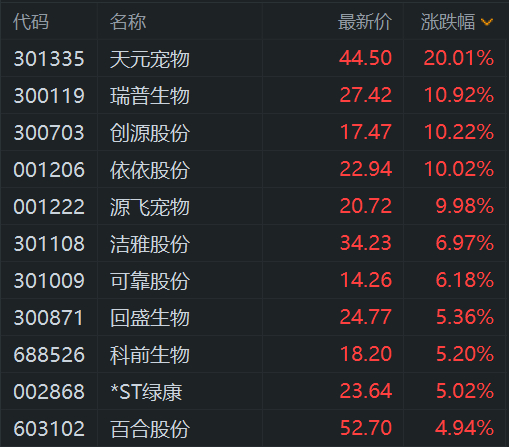 格隆汇5月20日|A股宠物经济股继续强势上涨,其中,天元宠物连续2日20cm涨停,并且刷新历史新高,瑞普生物、创源股份大涨超10%,源飞宠物、依依股份涨停,可靠股份、回盛生物、科前生物、洁雅股份跟涨。消息面上,2024年宠物食品市场规模达到1585亿元,占比高达52.8%。2024年宠物医疗市场规模达到841亿元,占比28%。根据派读宠物《2025年中国宠物行业白皮书》预计,到2027年,城镇宠物(犬猫)消费市场规模将突破4000亿元大关,达到4042亿元,2015年至2027年复合增长率为12.6%。(格隆汇)