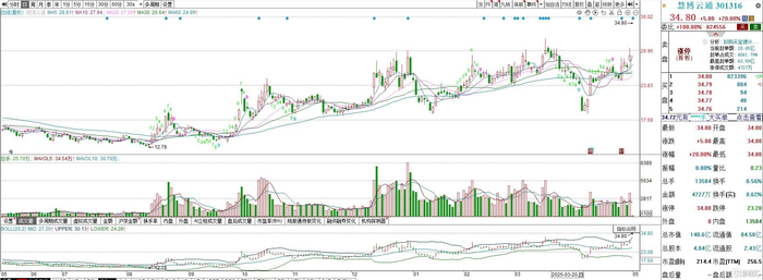 今日,慧博云通一字涨停,最新报34.8元/股,总市值140.6亿元。