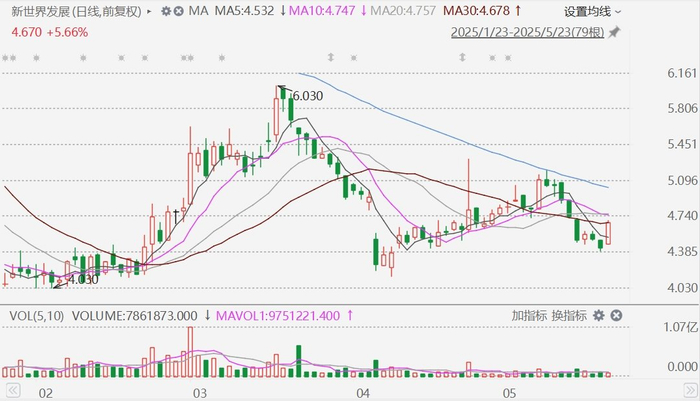 格隆汇5月23日|新世界发展(0017.HK)今日走强,盘中一度涨超6%,报4.69港元。彭博援引知情人士透露,新世界发展有限公司已获得约10家银行的承诺,将参与其875亿港元的贷款再融资。新世界发展力图在下月底前达成协议。知情人士称,中国银行、汇丰和渣打银行这三家大行,东亚银行、富邦银行(香港)、恒生银行这三家本土银行,法国的工商信贷银行,以及其他几家金融机构已经完成了内部审批程序,将加入该协议,总计承诺授信额度超过200亿港元。知情人士补充道,还有其他的银行也在进行内部审批,预计会在未来几周最终敲定。