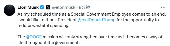 格隆汇5月29日|马斯克:在我作为(特朗普)特殊政府雇员的时间即将结束之际,我想感谢特朗普总统给我这个削减浪费性开支机会。DOGE使命只会随着时间的推移而加强,因为它将成为整个政府的一种生活方式。