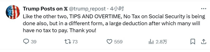 格隆汇6月1日丨美国总统特朗普在社交平台称:和另外两项政策(小费和加班费相关政策)一样,社会保障金免税政策也在推进中,不过是以不同的形式——通过大幅扣除,许多人之后将无需为社保金缴税。