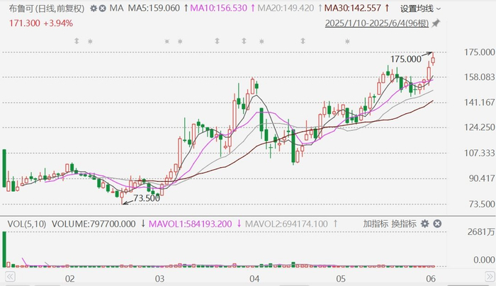 格隆汇6月4日|中国潮玩品牌火爆出圈走向全球,港股市场潮玩概念股布鲁可(0325.HK)今日盘中一度涨超6%,报175港元,再创上市新高,市值突破430亿港元。该股近3个月累涨超120%。