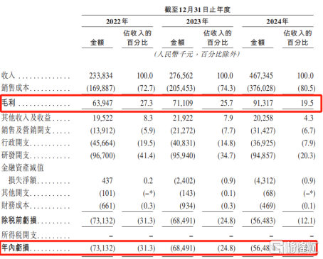 财务数据方面,2022年、2023年及2024年(报告期),公司的收入分别为2.34亿元、2.77亿元、4.67亿元,复合年增长率约为41.4%,年内净亏损分别为7310万元、6850万元及5650万元。