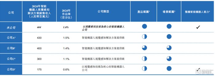根据灼识咨询的资料,按2024年相关收入计算,乐动机器人是全球最大的以视觉感知技术为核心的智能机器人公司,市场占有率约1.6%。市场其他参与者还包括禾赛科技、速腾聚创、图达通、SICK AG等。