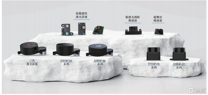 公司的传感器可以细分为:1、直接飞行时间(DTOF)激光雷达;2、三角测量激光雷达;3、固态线性激光雷达;4、四目矩阵传感器模块。