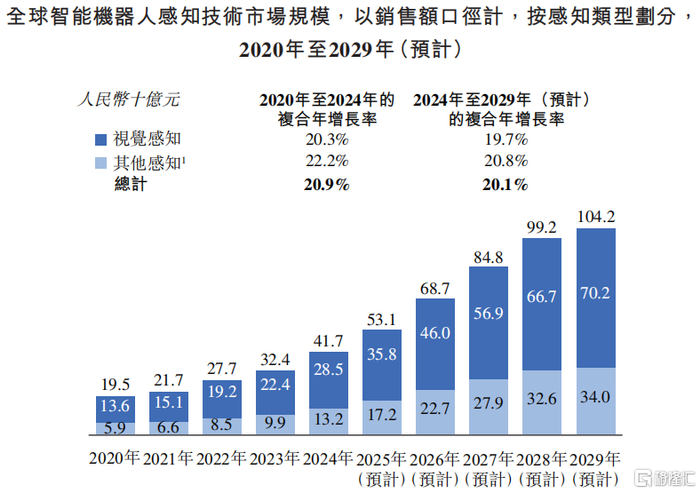 根据灼识咨询的资料,全球智能机器人视觉感知技术市场规模自2020年的136亿元增长至2024年的285亿元,复合年增长率达到20.3%。随着相关技术的进一步发展,该市场的规模将进一步增长,预计在2029年达到702亿元。