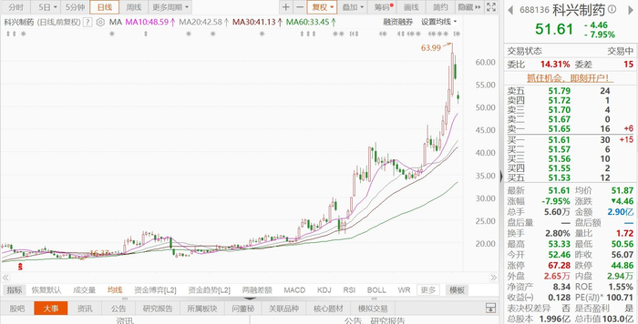 格隆汇6月5日|科兴制药(688136.SH)跌近8%,报51.61元,总市值103亿元。科兴制药公告称,公司控股股东深圳科益医药控股有限公司(简称“科益医药”)计划通过集中竞价或大宗交易方式减持不超过5,989,200股,即不超过公司目前股份总数的3.00%。减持期间为公告披露之日起15个交易日后的3个月内。减持原因为持股比例较高,优化公司股权结构,增加二级市场流动性。(格隆汇)