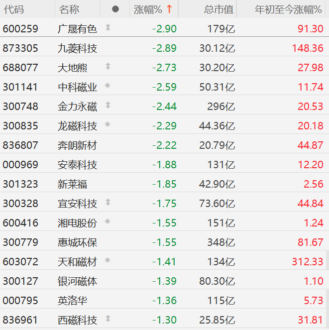 格隆汇6月6日|A股市场此前持续走强的稀土股今日部分回调,其中,广晟有色、九菱科技、大地熊、中科磁业、金力永磁、龙磁科技跌超2%。消息面上,日本计划在即将举行的美日关税谈判中,提出与美国加强在稀土供应链方面合作的建议。另外,彭博引述知情人士称,在中国4月收紧稀土出口以反制美国对华关税后,特朗普政府重启拜登时代打造国内稀土磁体供应链的计划,将涵盖稀土元素开采、加工及磁体生产。