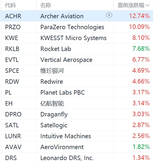 格隆汇6月9日|美国航空股盘前延续涨势,Archer Aviation涨超12%,ParaZero Technologies涨10%,KWESST Micro Systems涨超8%,Rocket Lab涨超7%,Vertical Aerospace涨超6%,维珍银河、Redwire涨超4%。此前特朗普签署命令加强美国无人机防御,促进超音速飞行。