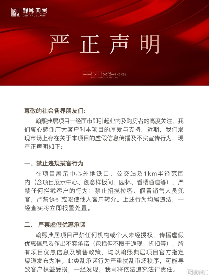 即使项目官方在6月9日的严正声明——市场高度关注项目,且严禁违规揽客行为以及严禁虚假优惠承诺,可以看出,开发商预售对市场的姿态和信心放得很低。
