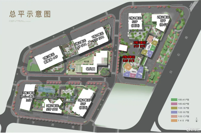 03地块,容积率为11.44,规划2栋超高层住宅(3栋一、二单元),以及1栋办公酒店物业。总户数1120户,包括回迁房991户、可售商品房139户。