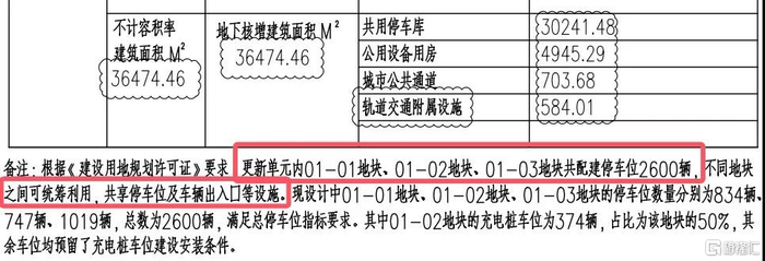 其次,3个地块总户数3030户,但停车位仅2600个,且不同地块共享停车位及车辆出入口设施,其中02地块总户数872户,停车位747个,则意味着业主未来有可能需要停车到其他地块的车库且车位紧张。