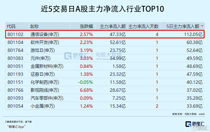 不仅于此,近5个交易日,以光模块为核心代表的通信设备行业期间获主力资金累计净买入超过112亿元,是A股期内唯一一个主力净流入超百亿的板块,且显著领先其他行业。这表明大资金正持续加仓产业链核心标的,板块配置价值获机构认可。
