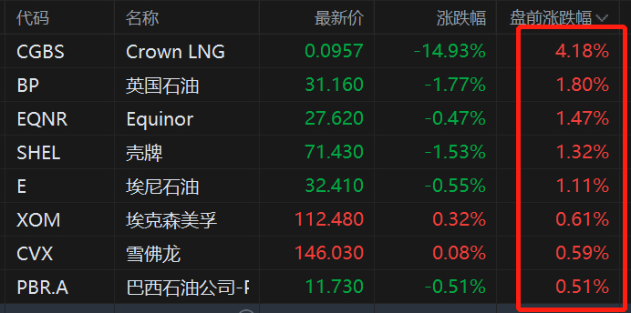 格隆汇6月17日|美股石油股盘前普遍上涨,其中,Crown LNG涨超4%,英国石油涨1.8%,壳牌、埃尼石油涨超1%,雪佛龙、埃克森美孚均上涨。