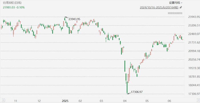 格隆汇6月20日|台股小幅低开,台湾加权指数跌0.1%,报21981.03点。