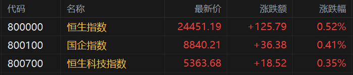 格隆汇6月27日|隔夜美股纳指、标普500指数均创历史收盘次高,热门中概股涨跌不一。港股三大指数高开,恒指涨0.52%,国指涨0.41%,恒生科技指数涨0.35%。盘面上,大型科技股涨跌各异,YU7订单超预期!小米集团高开8%创历史新高,快手涨1.38%,京东、阿里巴巴飘红,百度、美团、腾讯小幅下跌;中资券商股再度表现活跃,弘业期货涨近7%,招商证券、中金公司、中信建投等齐涨;汽车零件股强势,其中,浙江世宝大涨近15%,耐世特大涨9%,有色金属股继续昨日强势行情,昨日飙涨近86%的香港中旅继续涨14.57%。另一方面,除小米外多数汽车股走低,小鹏汽车跌近4%,比亚迪股份跌超2%,生物医药股、油气设备股、黄金股部分走低。(格隆汇)