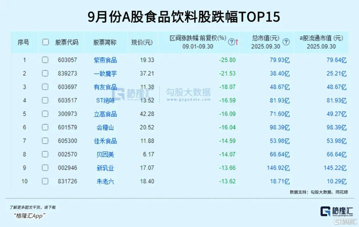 食品饮料板块9 月在 “旺季不旺” 的预期中持续低迷,板块指数月内最大跌幅超16%,近两周跌幅达1.48%,显著跑输大盘。核心矛盾集中在白酒与零食两大主线:白酒方面,8 月烟酒社零数据同比下滑 2.3%,中秋国庆双节动销预计承压,尽管禁酒令纠偏效应初显,但需求修复尚需时间;大众品则受消费大环境拖累,除预加工食品、软饮料小幅上涨外,零食板块回调幅度达 5.8%,资金关注度持续走低。
