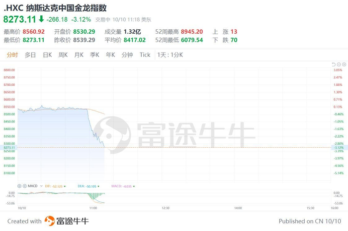 格隆汇10月10日|纳斯达克中国金龙指数跳水跌超3%,创8月27日以来最大跌幅。其中,金山云跌9%,万国数据、大全新能源、蔚来跌超7%,向上融科、晶科能源、小鹏汽车、知乎、文远知行跌超6%,哔哩哔哩、阿里巴巴、百度、京东跌超5%。