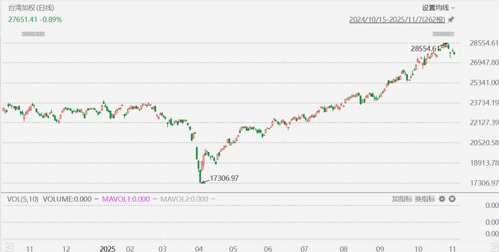 格隆汇11月7日|台股收跌,台湾加权指数收报27651.41点,跌248.04点或0.89%。