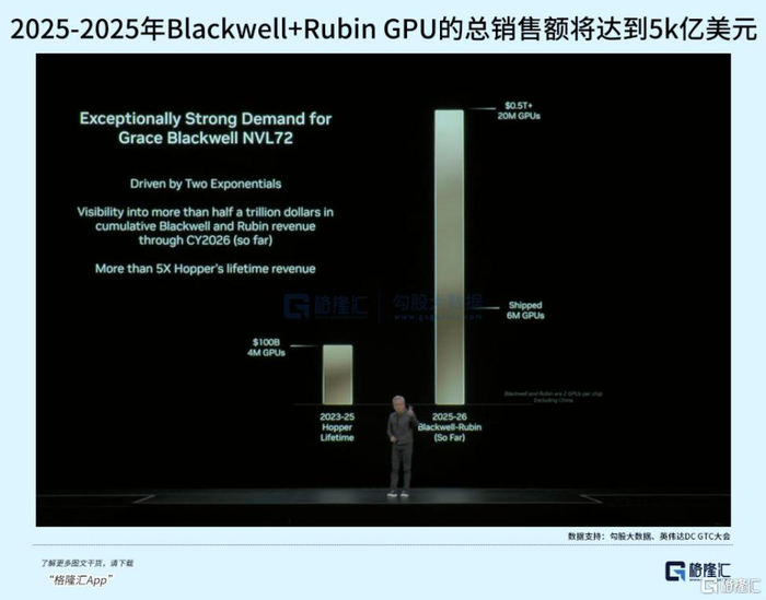 更令人惊叹的是,公司对Blackwell和Rubin平台从2025年初到2026年底的累计收入可见度,已高达5000亿美元——这一数字比Hopper全生命周期的收入高出5倍,充分印证了市场对其产品的认可。