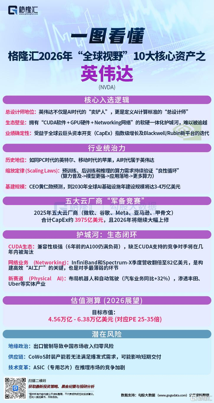 2026年,全球科技行业的主旋律依然是AI算力竞赛,而英伟达作为这场竞赛的“掌舵者”,手握5000亿美元的订单可见度,背后有五大云厂商数千亿美元的资本开支托底,成长确定性极高。
