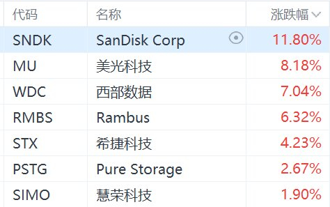 格隆汇1月2日|美股市场存储芯片概念股集体大涨,其中,SanDisk Corp大涨近12%,美光科技涨超8%,西部数据涨7%,Rambus涨超6%,希捷科技涨超4%。