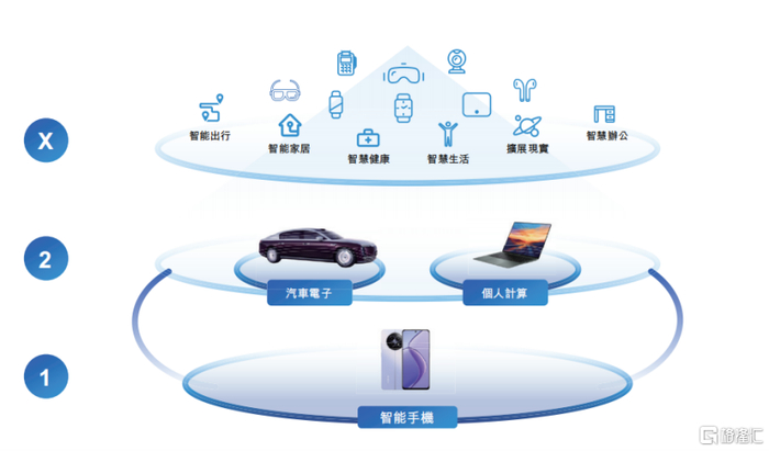 行业趋势为ODM价值重估提供了土壤,而龙旗科技能否真正收获红利,则取决于其“1+2+X”战略能否兑现。该战略以智能手机业务(“1”)为基本盘,以个人计算与汽车电子(“2”)为增长引擎,并以AIoT等多品类(“X”)作为延伸方向,构建出梯次分明、衔接有序的业务演进路径。