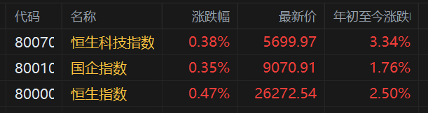 格隆汇1月9日|隔夜美股三大指数涨跌不一,中概指数涨1.09%。连续2日走低的港股三大指数高开,恒指涨0.47%,国指涨0.35%,恒生科技指数涨0.38%。大型科技股多数上涨,其中阿里巴巴涨近4%,京东涨超3%,百度则跌2.49%;国际油价上涨,三桶油集体高开,风电股、海运股、稀土概念股齐涨。另外,脑机接口概念股、生物医药股走低。三只新股今日上市,MINIMAX-WP高开42.67%,金浔资源高开26.67%,瑞博生物-B高开29.38%。(格隆汇)