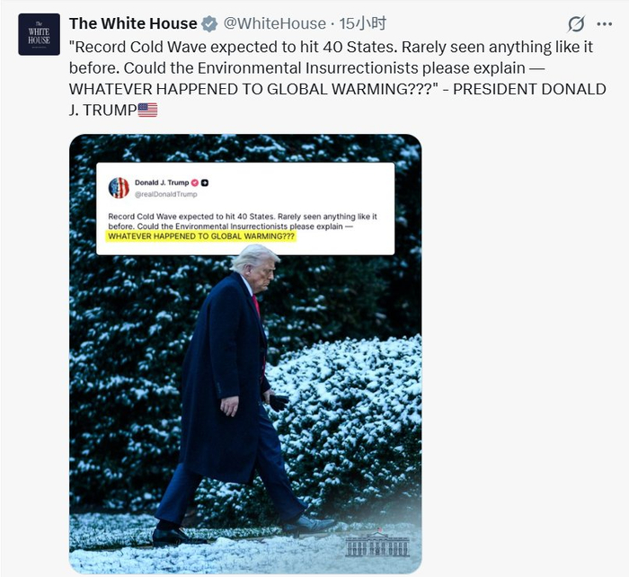 格隆汇1月24日|美国总统特朗普发文称,强寒潮预计侵袭美国40个州,这种情况前所未见。环保主义者们能否解释一下——全球变暖到底怎么了???