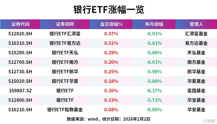 银行ETF汇添富、银行ETF易方达、银行ETF天弘、银行ETF南方、银行ETF鹏华、银行ETF华夏、银行ETF、银行ETF 银行ETF指数基金逆势上涨。