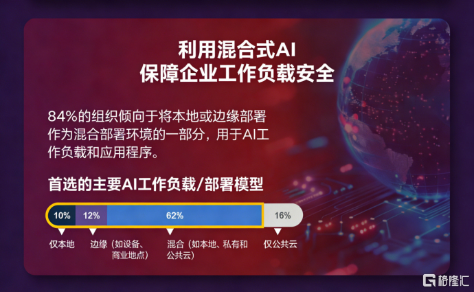 调研显示,面对 Agentic AI 的冲击,已有近三分之二(62%)的企业将混合式 AI 作为首选架构。混合式 AI 通过融合公有云、私有云及本地计算资源,帮助企业在安全性、性能与灵活性之间实现更优平衡。