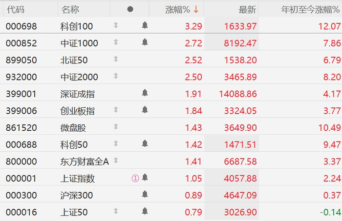 格隆汇2月3日|A股主要指数涨幅扩大,其中,上证指数涨超1%,深证成指涨近2%,创业板指涨1.8%;CPO、光伏设备、商业航天、通信设备、化工、工程机械等板块涨幅居前;全市约4600股上涨,800股下跌。