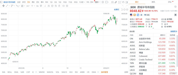 费城半导体指数上涨5.7%,创5月12日以来最大单日涨幅。