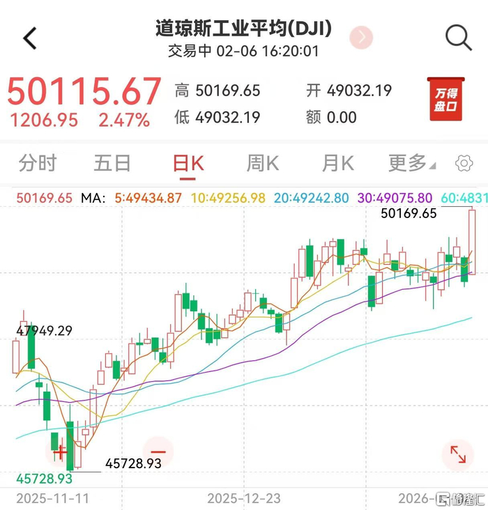当地时间周五,标普500指数和纳斯达克指数强劲反弹,而道指在金融与周期股带动下强势上行,首次收于50000点上方。