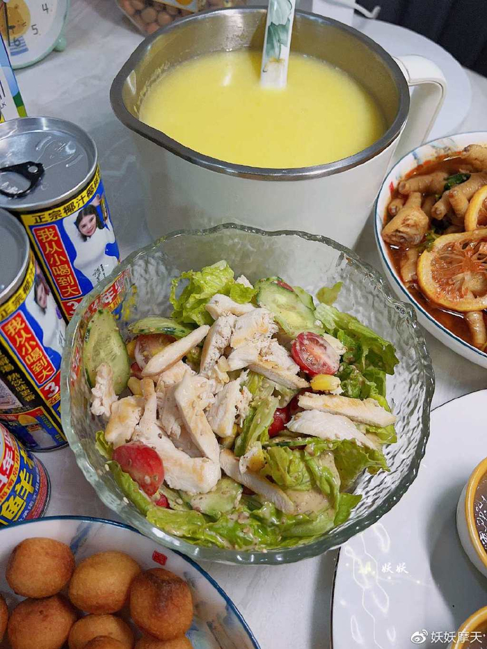 做沙拉用到了一些玉米粒,新鲜的玉米,一半用来做了沙拉,一半用豆浆机打了玉米汁喝,外面的玉米汁一扎要58块,这个成本真心太低,口感跟外面58一扎的完全没有区别。