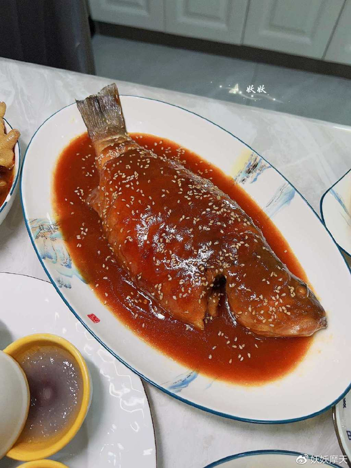 糖醋鱼是孩子们喜欢吃的口味,酸酸甜甜的,我们用的是鲈鱼,鲈鱼的刺少肉多,价格也不贵,20块钱一斤,这次买了条快两斤的,洗干净裹上淀粉炸熟,然后调个糖醋汁浇上来,撒上芝麻,跟外面卖的没啥区别吧?