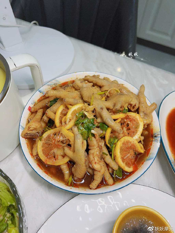 馋柠檬鸡脚好久了,这次买了两斤鸡脚,泡了一大盆,上桌了一部分,冰箱里还剩下一部分,太好吃了,做法一定要分享给大家,鸡脚对半切开,凉水入锅后加葱姜煮十五分钟,然后用凉水冲洗干净,捞出来放到一个深点的容器里,加入红油,香醋,生抽,白糖,盐,去籽的柠檬,蒜末,姜丝,香菜,冰块,拌匀以后放冰箱冷藏几个小时就入味了,今年的鸡脚贵一些,二十七八块一斤,但是两斤鸡脚足足能泡出一大盆,够吃好久了。