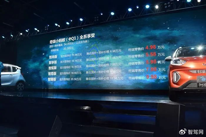 2017年3月,奇瑞推出小蚂蚁(eQ1),售价4.98-9.98万元。
