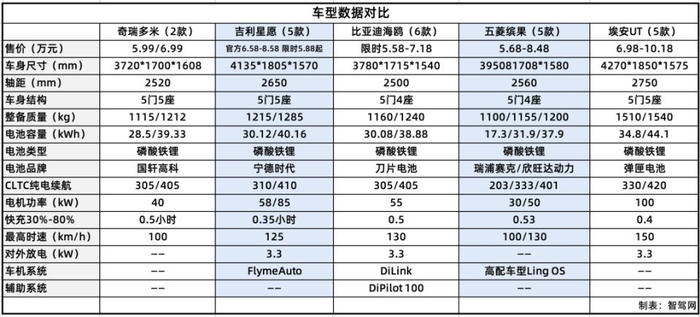 我们也一起横向对比一下多米与目前竞品的车型数据。