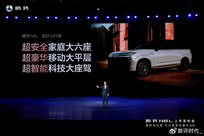 腾势总经理李慧这样总结N8L:超安全家庭大六座、超豪华移动大平层、超智能科技大座驾,以硬核技术实力重塑家庭大六座豪华SUV新标准。