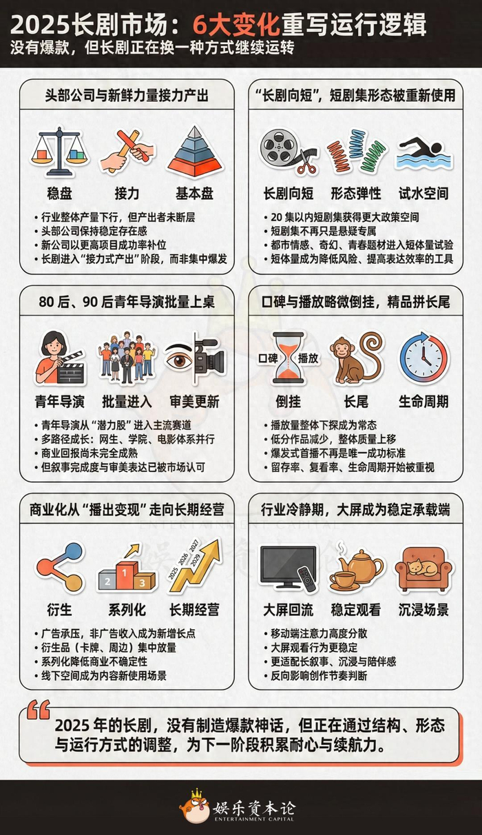 更重要的是,回到创作现场、回看这一年的实际变化,会发现,其实长剧并未退场。相反,一些不那么显眼、却更具长期意义的转向正在发生。创作端、商业端与观看端,都在悄然调整运行逻辑,为下一阶段积蓄能量。