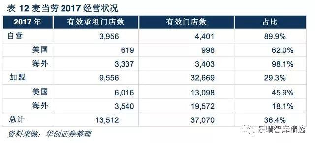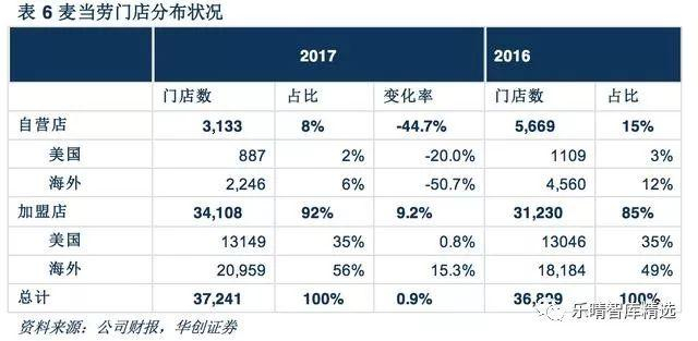 根据2014-2016年的新闻口径整理和推算,交易前麦当劳中国大陆大约有1800家门店为自营,自营比例超过65%,在交易后这部分门店全部转为加盟口径。