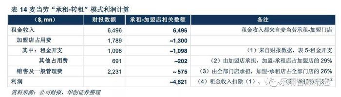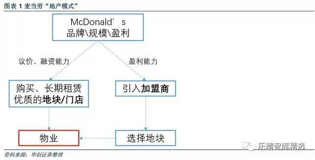 而麦当劳的地产商色彩则表现为:强大的品牌和规模带来了强大的议价和融资能力——购买、长期租赁优质的地块门店——引入加盟商并收取租金;强大的盈利能力利于吸引加盟商——引入加盟商——选择地块。乐晴智库微信公众号:lqzk767
